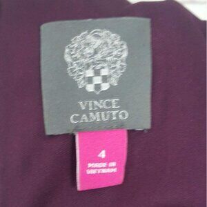 Vince Camuto purple floral sleeveless pleat dress with pockets. Hidden back zipper with hook for closure. Round neck. Fully lined. Colors include: purple, pink, cream, black. Excellent pre-owned condition with no stains or tears.