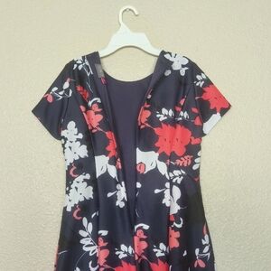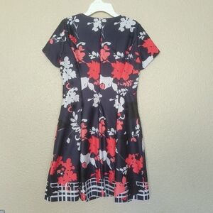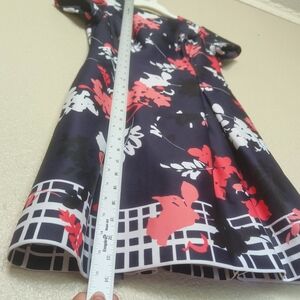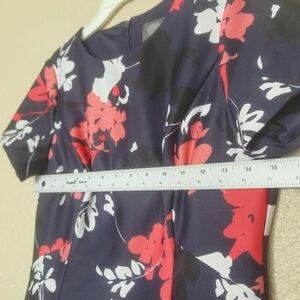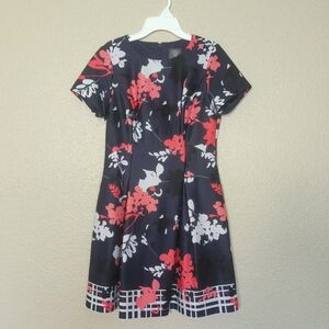 Vince Camuto Floral Fit and Flare Dress Navy Pink White Size 6p Knee Length