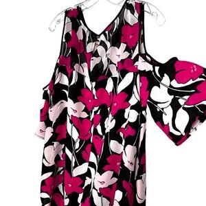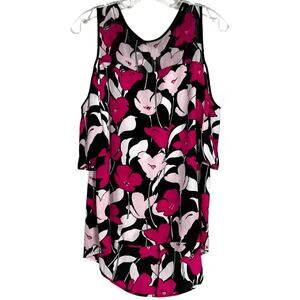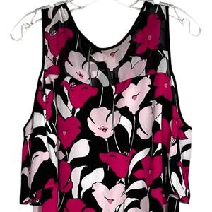 Vince Camuto Floral Flowy Blouse Short Sleeves Top Cold Shoulder Black Pink Sz M