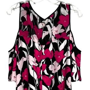 Vince Camuto Womens M Black Pink Floral Blouse
