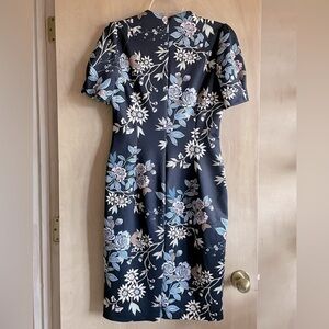 Vince Camuto Floral Navy Blue White Puff Sleeve Sheath Dress Size M 10