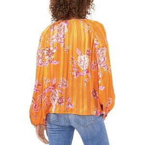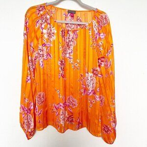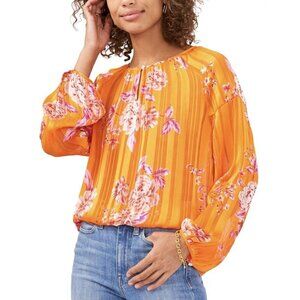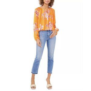 $79 Vince Camuto Womens Peasant Blouse MEDIUM Top Orange Rio Gardens Floral. 00567