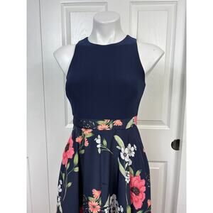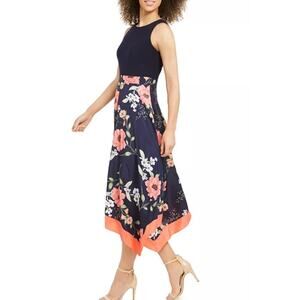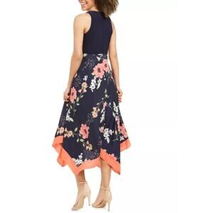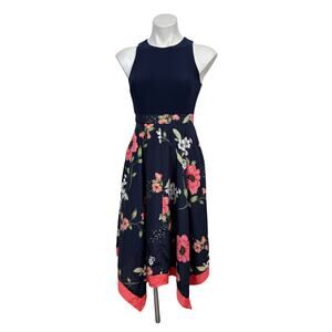 Vince Camuto Floral Print Asymmetrical Hem Dress Size 2P Sleeveless Navy