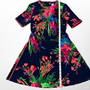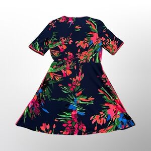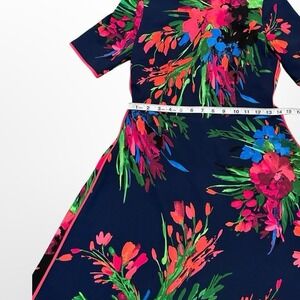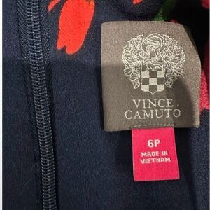 Keywords: Vince Camuto dress, floral dress, navy dress, short sleeve dress, women's dress, size 6P, petite dress, casual dress, floral print, summer dress, spring dress, party dress, cocktail dress, knee length dress, fit and flare