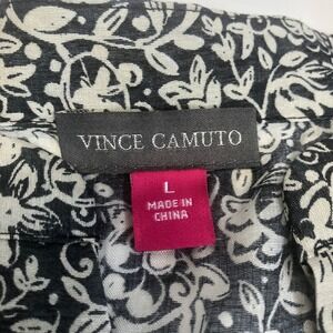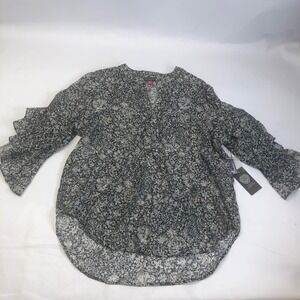 Vince Camuto Floral Print Ruffle Sleeve Blouse Women's Size L Sundown Rich Black