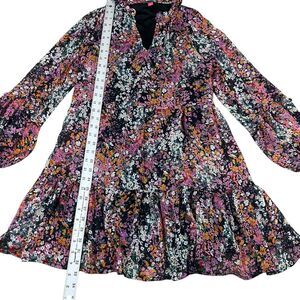 Vince Camuto Floral Short Dress Three Tiered Boho Lined Long Sleeve Size Small