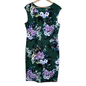 Vince Camuto Floral Stretch Sheath Green Dress Size 16
