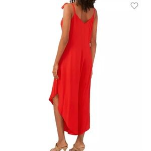 ❤️Vince Camuto Floral Tie Shoulder Jumpsuit Lobster Red