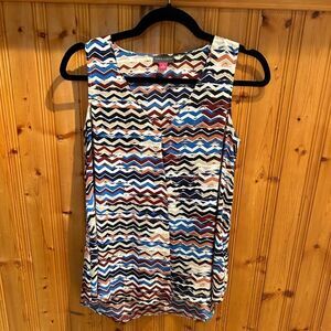 V neck Sleeveless flowy blouse with abstract print from Vince Camuto. Soft, smooth fabric. Great addition for your summer wardrobe!
