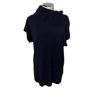 Vince Camuto Foldover Split Neck Short Sleeve Black Knit Tunic Sweater Size M