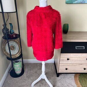 Vince Camuto Frayed Unique Red Mock Neck Top NWT
