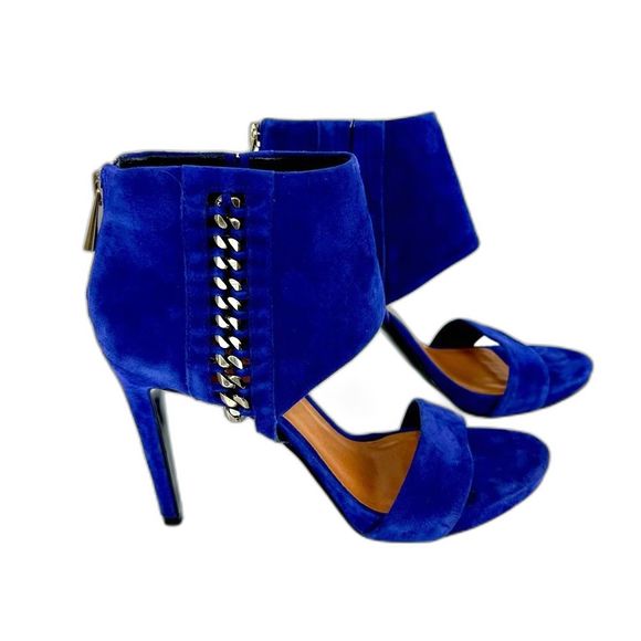 Vince Camuto Freya Open-Toe Heels Size 7 Blue Ankle Cuff Silver Chain Details