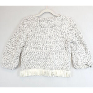 Vince Camuto Fringe Hem Sweater Women XS White Black Boucle Textured Pullover
