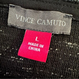 Vince Camuto black and white sweater with fringe at the bottom Size large Bust: 42 in. Shoulder to Hem: 26.5 Excellent condition