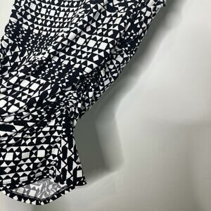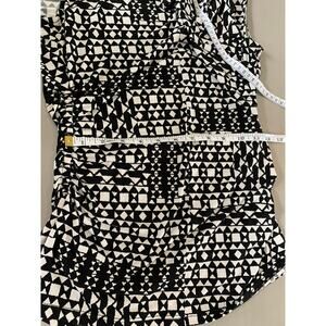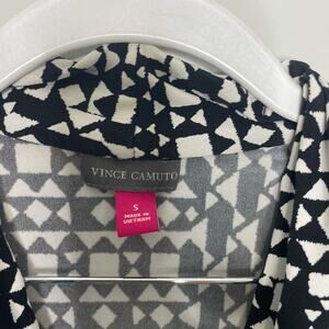 Vince Camuto Geo Pattern Sleeveless Side Ruched Blouse Top Black/White Women's S