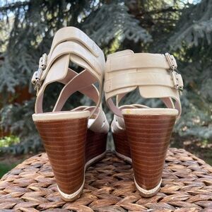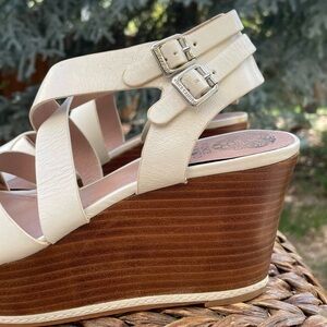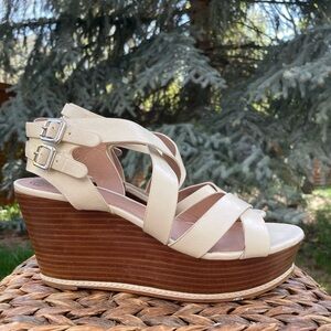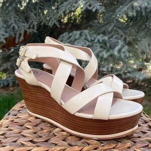 Vince Camuto Giada Off White Leather High Platform Wedge Summer Sandals. Size 9.5
