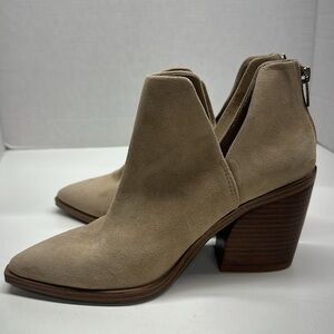 Vince Camuto Gidgeta Bootie High Heeled Ankle Boot Shoe Suede Tan Brown Size 9.5