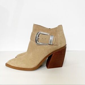 Vince Camuto Gidgey Suede Buckle Pointed Block Heeled Ankle Booties 5.5 US