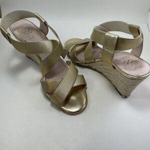 Vince Camuto Gold Espadrille Wedge Sandals Women’s 9M Stretch Strap Slip On