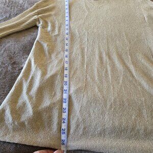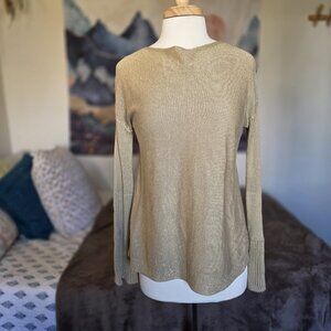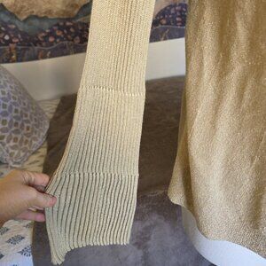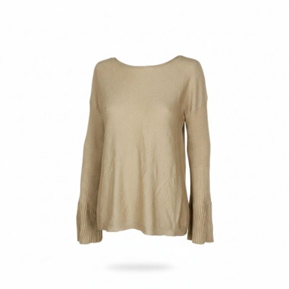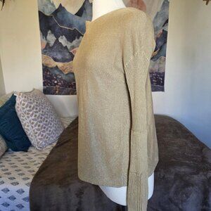 Vince Camuto Gold Metallic Lurex Sweater Women Sz S Ribbed Bell Sleeve Boat Neck
