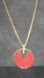 Chic necklace with a vibrant red pendant. Gold chain adds elegance.