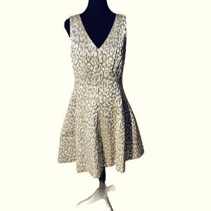 Vince Camuto Gorgeous Holiday Gold V-Neck Fit And Flare Dress Sz 10