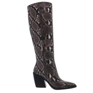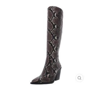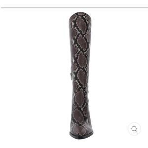 These boots feature a gorgeous brown-toned snakeskin print. They are perfect to add an edgy element to your wardrobe. They add western inspiration to your favorite look. They have a clean profile topping with a slightly underslung block heel and a pointed toe. It is a snakeskin-embossed leather. Pullon style with a side zipper closure. New without tags or box.