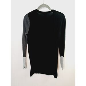 This Vince Camuto sweater in size XS is a must-have for any woman's wardrobe. The color block design features black and gray tones that are perfect for a casual or business occasion. The crew neck and long sleeves make it a great choice for colder seasons like winter, fall, and spring.