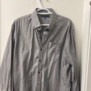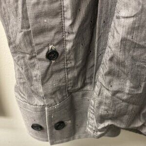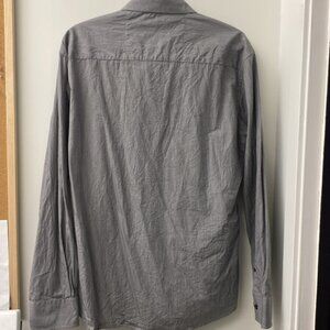 Stylish gray button-up shirt. Features a classic collar and front pocket. Perfect for casual or formal wear.