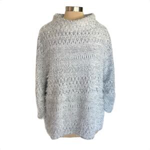 Vince Camuto Gray Fuzzy Funnel Neck Sweater Sz 2X Wide Sleeve Contemporary