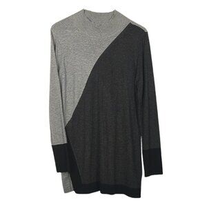 Stylish gray and black colorblock sweater. Perfect for a chic look.