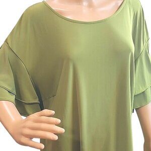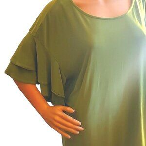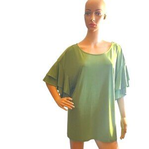 Stylish green tunic with ruffle sleeves. Off-shoulder design. Perfect for casual wear.