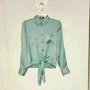 Vince Camuto Green Satin Iridescent Button Up Tie Front Top Blouse