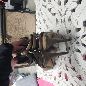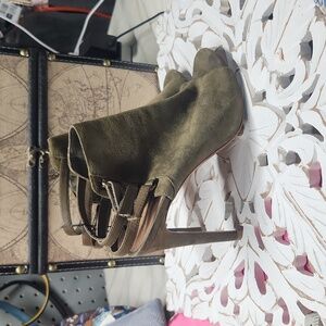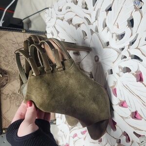 Vince Camuto Green Suede 4in heels with adjustable velco strap size 8.5