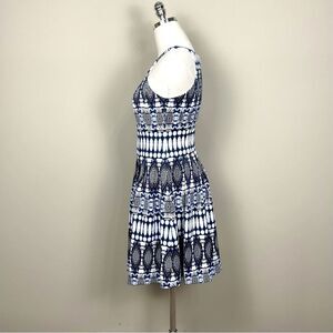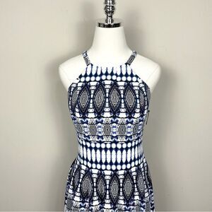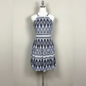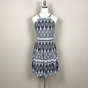 Vince Camuto Halter Dress Fit & Flare Blue White Abstract Art Pattern Sz 4 New