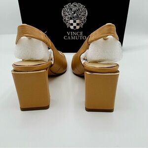 Crafted with a slim block heel and timeless pointed toe, the Hamden pump from Vince Camuto effortlessly upgrades your wardrobe. The subtle metal accent above the heel adds a touch of shine as you walk away. Whether you pair this slingback with a slip skirt for girls night out or straight leg trousers for the office, you'll keep finding new ways to style this open-back pump.