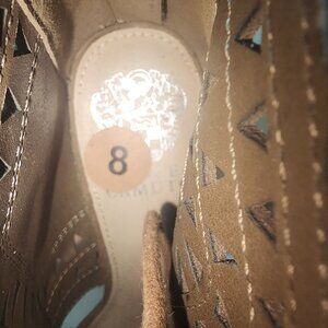 Vince Camuto Heel Booties Womens 8 Lallia Block Heels Suede Lace Up Lazer Cut