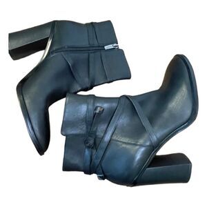 Vince Camuto Heeled Moto Boots Black Leather Booties Zip-Up 8.5 39