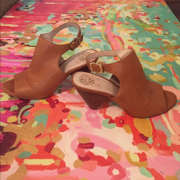 Brown/Tan with wooden heel. Barely worn, great condition!