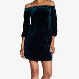 Vince Camuto Holiday Emerald Green Velvet Off Shoulder Mini Dress M