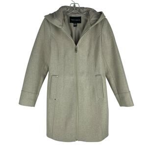 Vince Camuto Hooded Full Zip Jacket Coat Mid Length Tan Oatmeal