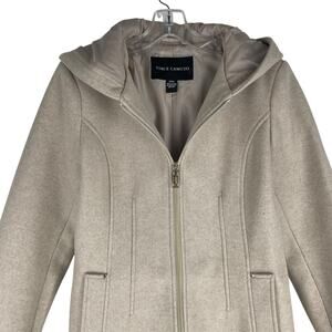 Vince Camuto Hooded Full Zip Jacket Coat Mid Length Tan Oatmeal Size S