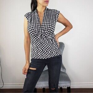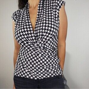 Vince Camuto Houndstooth sleeveles shirt. In Excellent pre owned condition. No flaws, rips or stains. Clean and ready to wear.