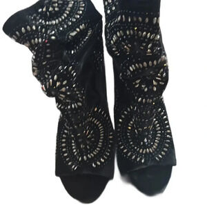 Black beaded Peep Toe Booties Size: 37.5