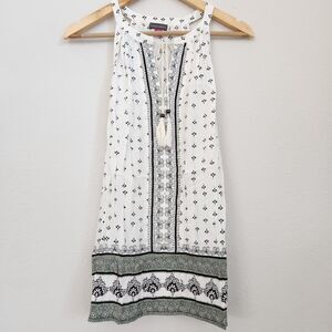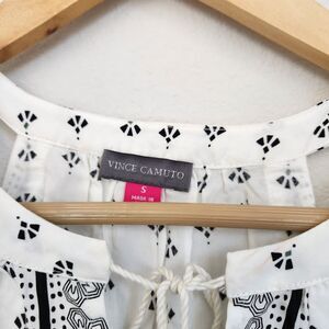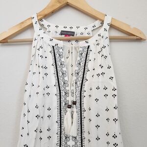 Vince Camuto Ivory Printed Tassel-Front Sleeveless Top | Size S