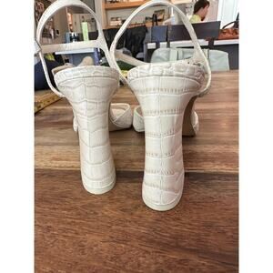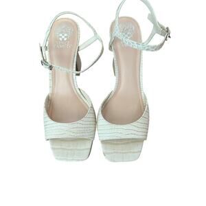 Vince Camuto Ivory Snake Embossed Leather Ankle Strap Heeled Sandal Size 10