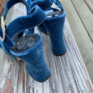 Step out in style with these elegant blue velvet heels. Perfect for any occasion, these shoes offer both comfort and sophistication.