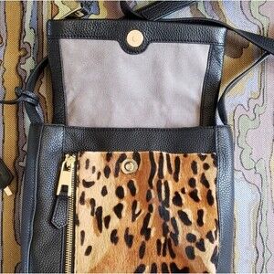 Vince Camuto Jahn Leopard Print Black Leather Crossbody Handbag