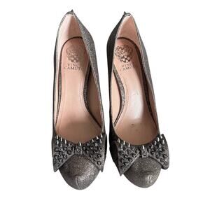 Vince Camuto Jamma Pump, Bronzite Glitter Spike Heels with Bow Sz 8.5 - 5” heel