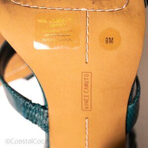 Vince Camuto Jeminstie Sandals 9 Turquoise Heel Leather Strappy Cocktail Wedding